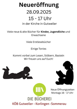Sonntag, 28.09.2025, Neueröffnung der  Bücherei in der Kirche Gutweiler
