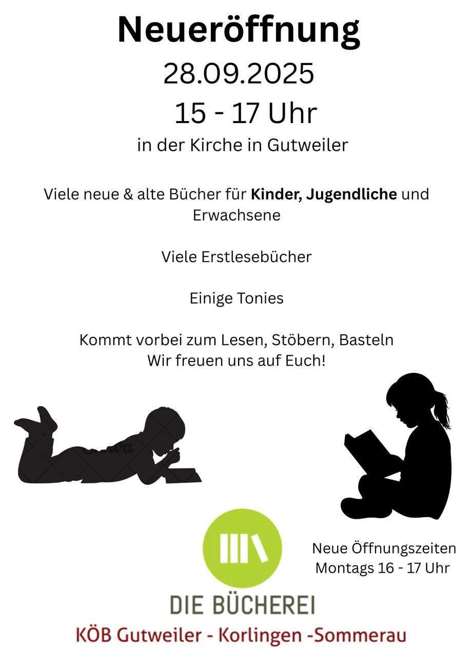 Seit September 2025 befindet sich die KÖB Gutweiler - Korlingen - Sommerau in der Kirche in Gutweiler.