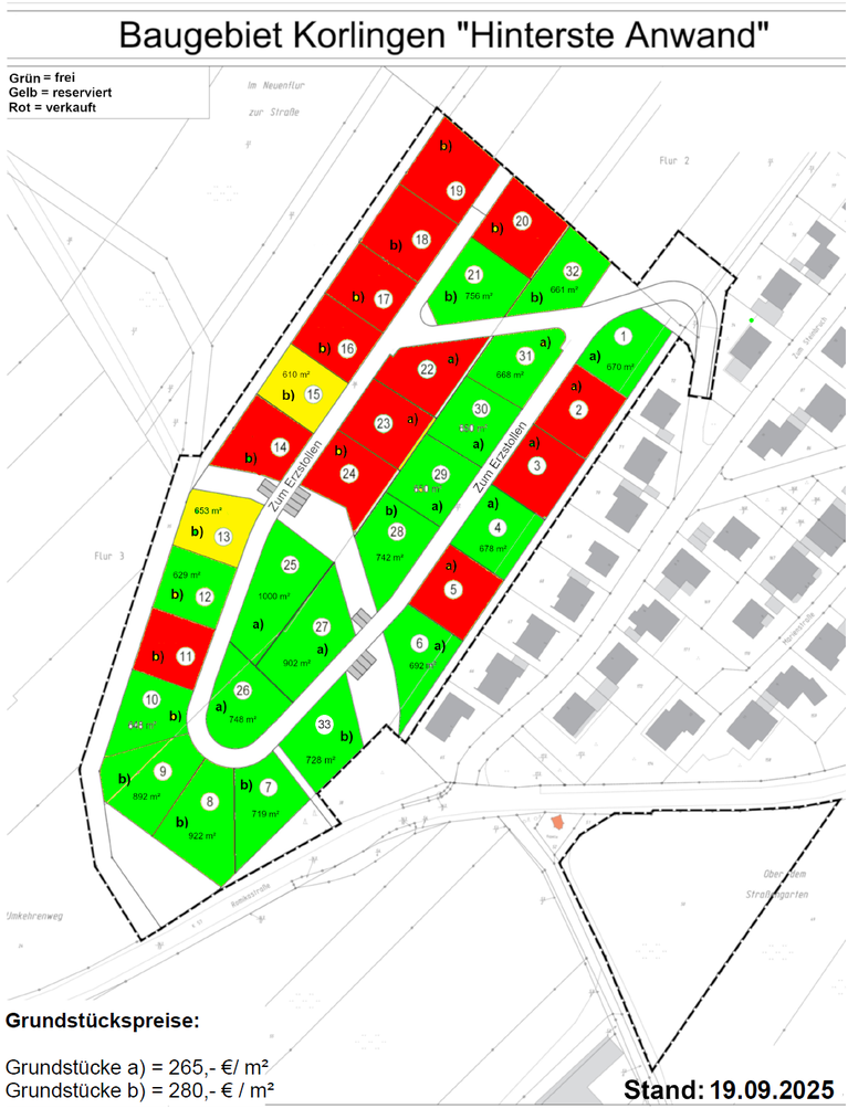 In der Gemeinderatsitzung am 16.05.2023 wurden neue Grundstückspreise festgelegt und beschlossen, die noch verfügbaren Grundstücke alle an den Markt zu bringen.