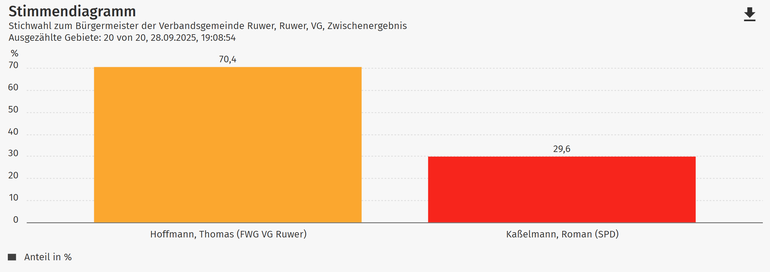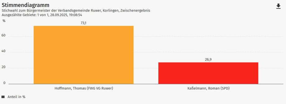Damit ziehen Thomas Hoffmann und Roman Kaßelmann in die Stichwahl am 28. September ein. Am Wahlabend gratulierten sich die beiden Kandidaten gegenseitig für das Wahlergebnis und den Einzug in die Stichwahl.